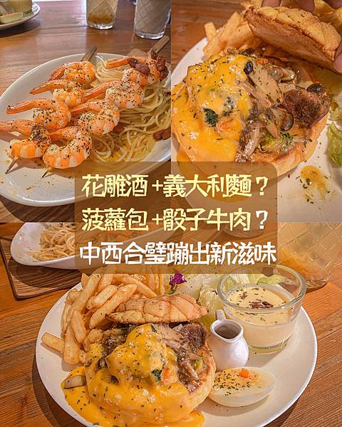 菠蘿麵包結合骰子牛、花雕酒結合義大利麵,中西合璧不僅僅蹦出新滋味也真的好吃,難怪能在競爭激烈的紅海台中存活四五年,還在逢甲那兒開姊妹店春三朝午,但似乎妹妹比較有名氣🤔 Pei 發表在 痞客邦 留言(0) 人氣(140)